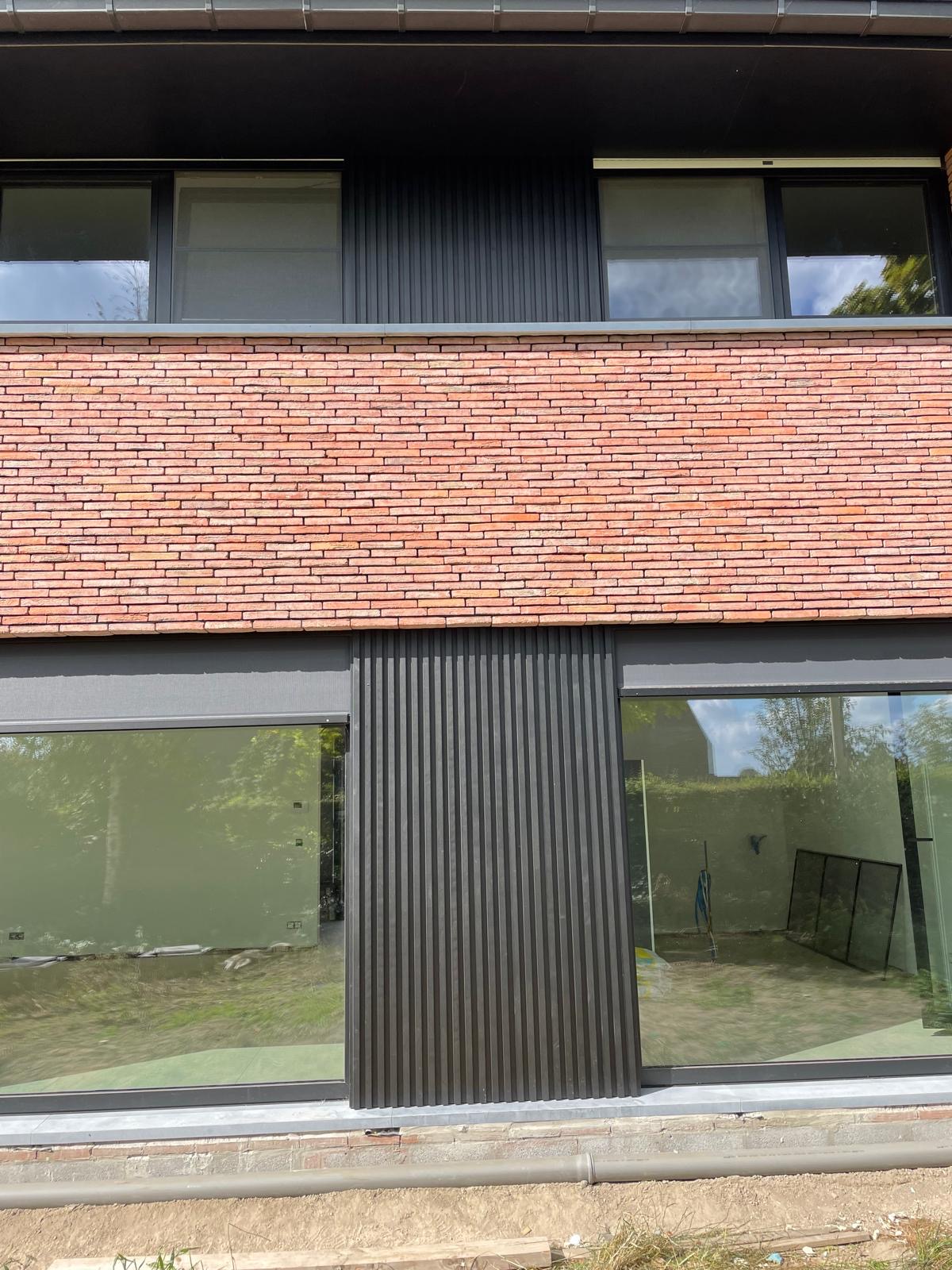 Voor deze woning plaatsten we aluminium ramen in RAL 9005S, een satijnzwarte tint die de moderne uitstraling van de gevel versterkt. De slanke aluminium profielen laten veel licht binnen en bieden tegelijk een hoge stabiliteit — ideaal voor grote glaspartijen. De combinatie met de verticale zwarte gevelaccenten zorgt voor een krachtig, hedendaags geheel dat zowel duurzaam als onderhoudsarm is.