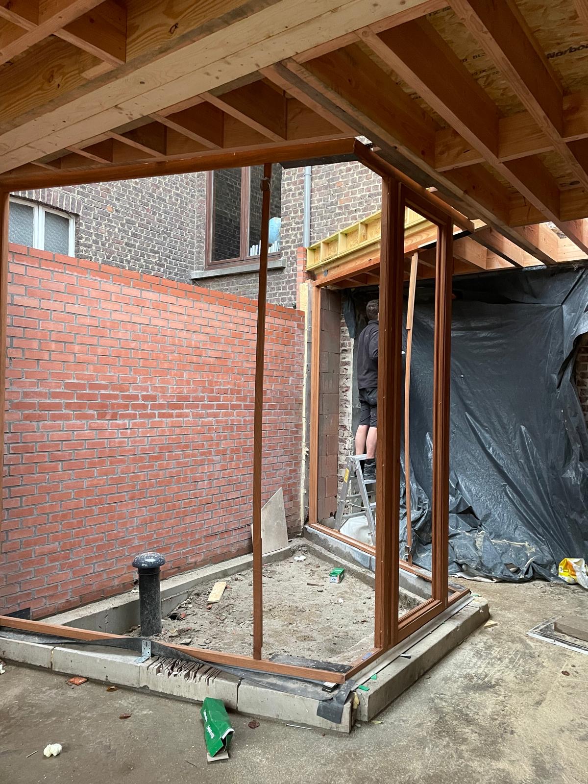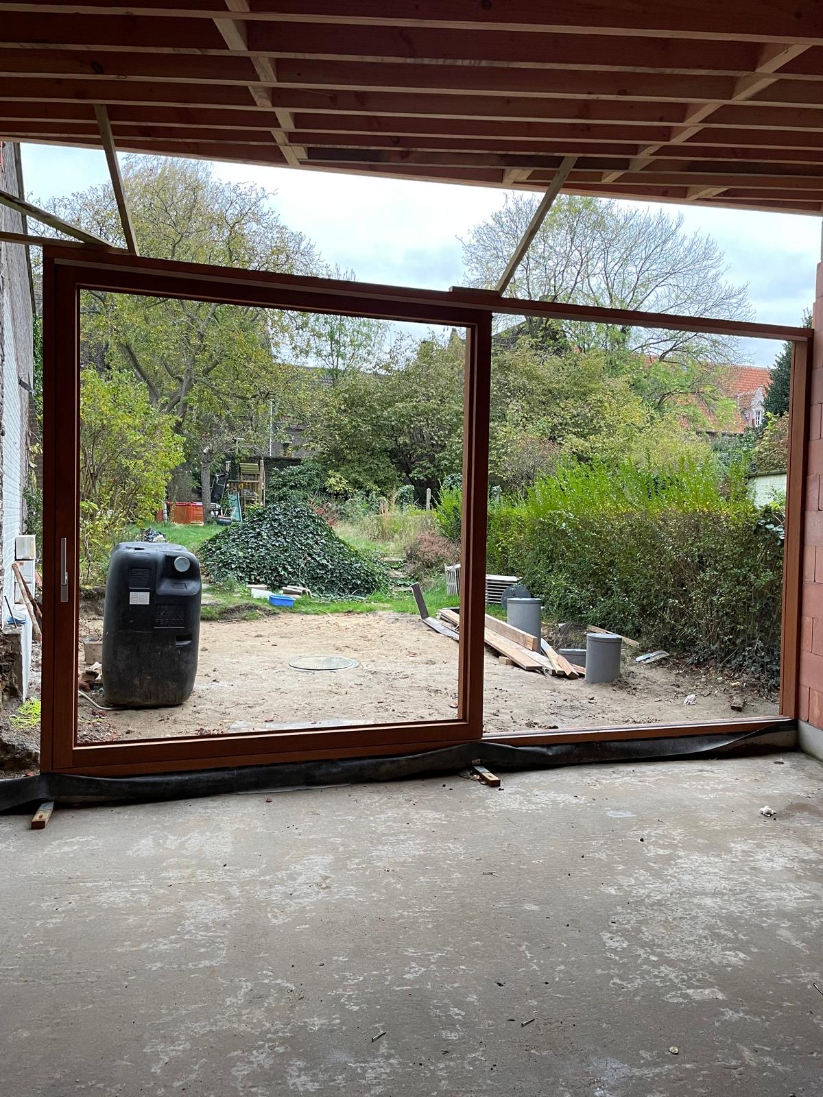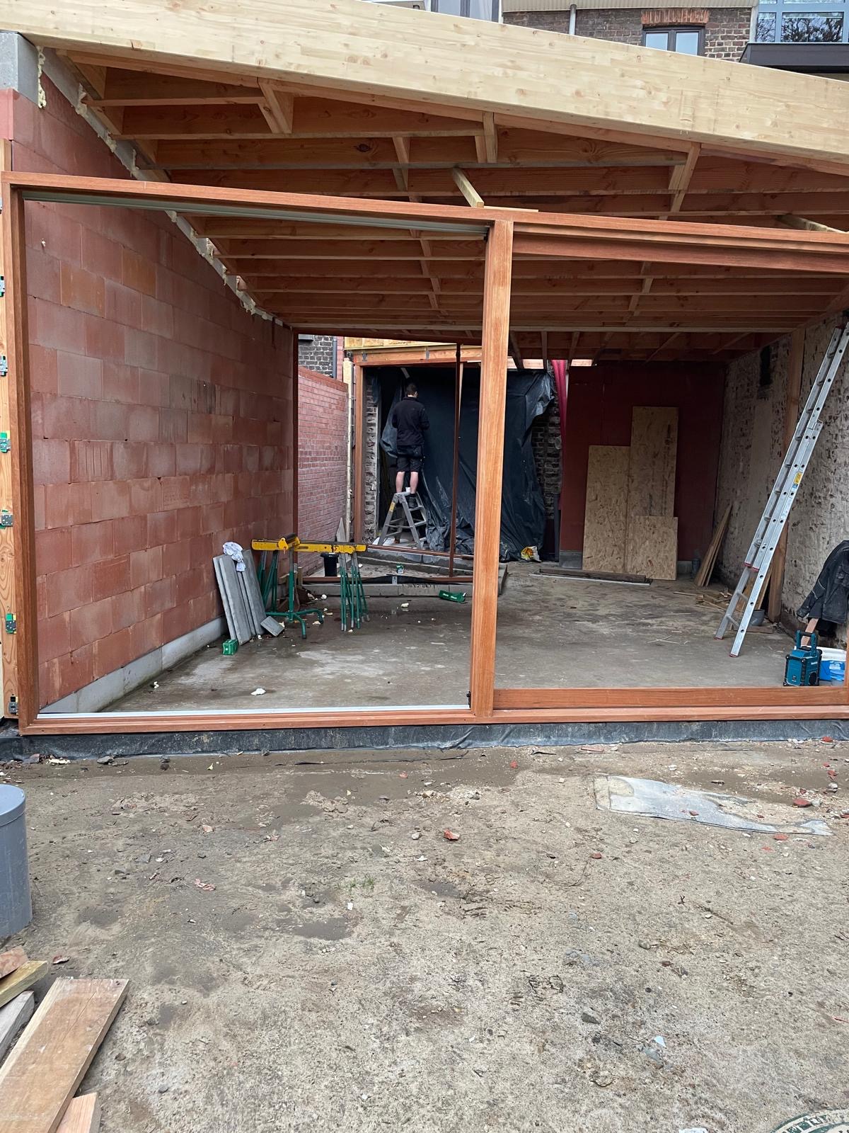 Op deze foto’s zie je een moderne dakuitbouw die werd afgewerkt met strakke, witte gevelplaten. De grote ramen met houten kaders zorgen voor veel licht en geven het geheel een warme toets. Door de strakke lijnen en egale afwerking krijgt de woning een frisse, hedendaagse look.