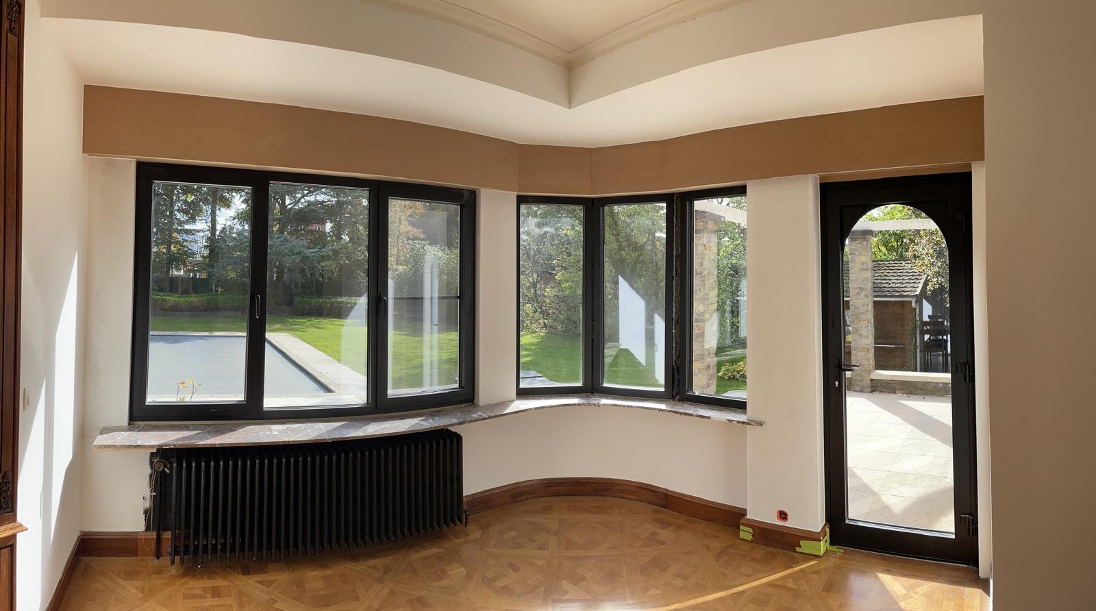 Op deze foto’s zie je een moderne dakuitbouw die werd afgewerkt met strakke, witte gevelplaten. De grote ramen met houten kaders zorgen voor veel licht en geven het geheel een warme toets. Door de strakke lijnen en egale afwerking krijgt de woning een frisse, hedendaagse look.